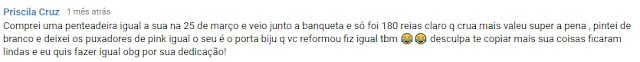 Então mandei uma mensagem para a Priscila, se ela gostaria de compartilhar aqui no blog, a penteadeira e o porta-biju, e ela topou !